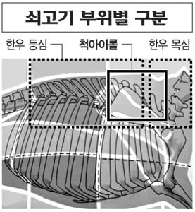 특히 미국 소는 '척(Chuck)'이르는 희안한 이름으로 부위를 부릅니다.
